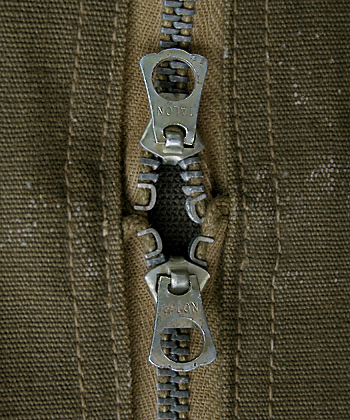 天頂部にフラップの無い仕様でカラーはダーク調カーキ色、完動状態のTALON Zipper付き。使用感や些細な小傷、擦れ等はあるもののWWII時に軍務で使用された証である。実物極上品 。