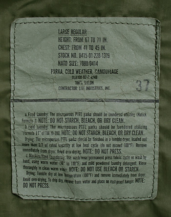 ■制式名称:PARKA, COLD WEATHER, CAMOUFLAGE