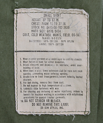 ■制式名称:COAT, COLD WEATHER, MAN'S, FIELD, OG-107