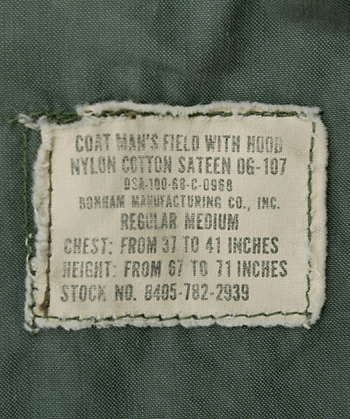 ■制式名称:COAT, MAN'S, FIELD WITH HOOD NYLON COTTON SATEEN OG-107