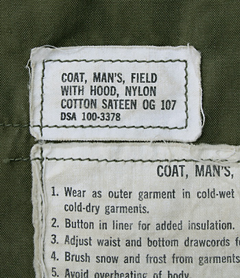 ■制式名称:COAT, MAN'S, FIELD WITH HOOD, NYLON COTTON SATEEN OG 107
