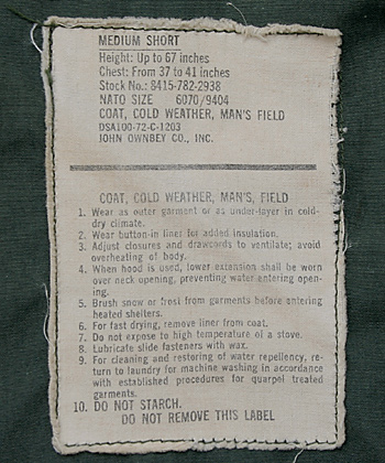 ■制式名称:COAT, COLD WEATHER, MAN'S, FIELD