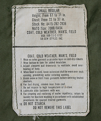 ■制式名称:COAT, COLD WEATHER, MAN'S, FIELD
