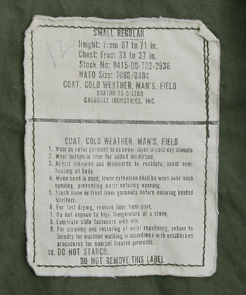 ■制式名称:COAT, COLD WEATHER, MAN'S, FIELD