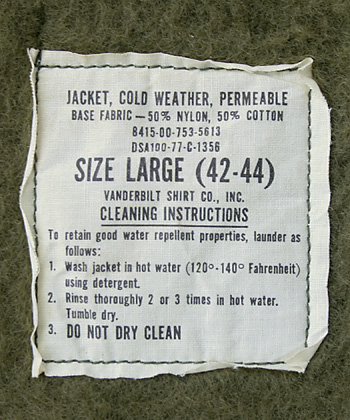 ■制式名称:JACKET, COLD WEATHER, PERMEABLE