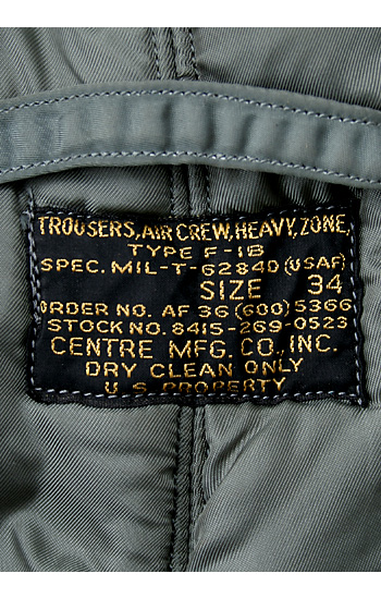 ■制式名称:TROUSERS, AIR CREW, HEAVY, ZONE, TYPE F-1B