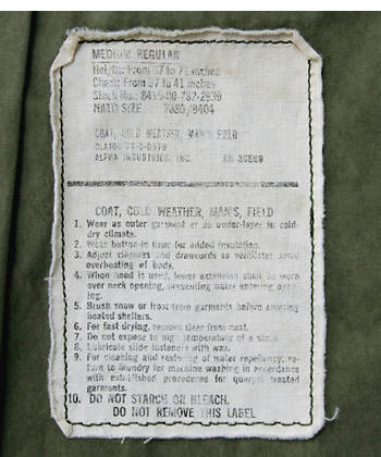 ■制式名称:COAT, COLD WEATHER, MAN'S, FIELD