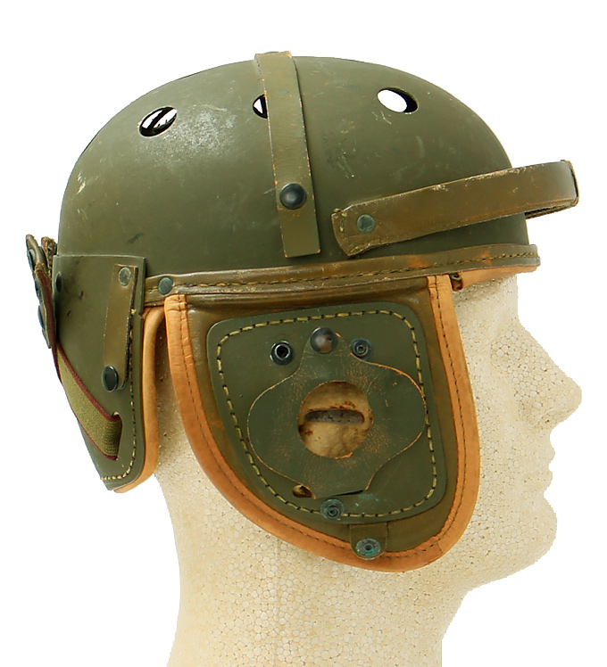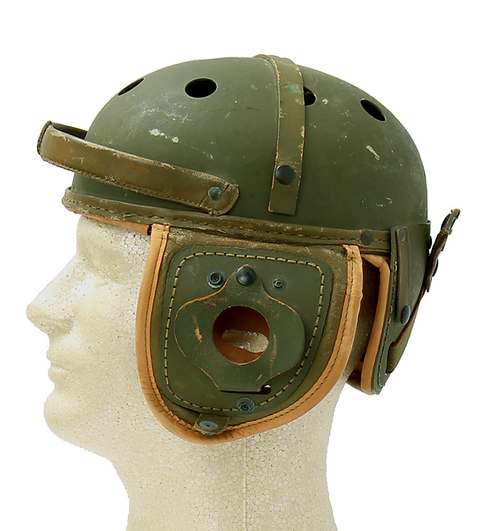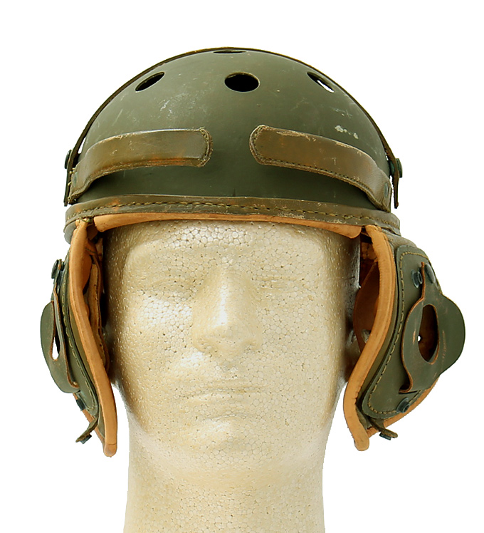 アメリカンフットボールのヘルメットを基に設計されたと言われる『WWII US ARMY タンカーズヘルメット 』。大戦時、米陸軍機甲部隊において、戦車、装甲車等の戦闘車両搭乗員頭部保護用として支給された。大戦米軍装備収集家向、コレクターズ・アイテム!! 実物極上放出品。