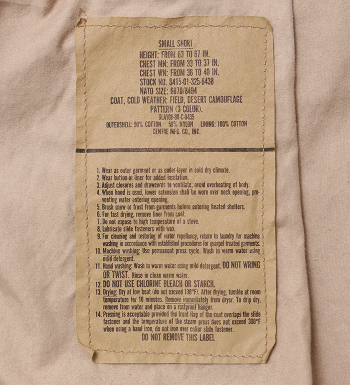 ■制式名称:COAT, COLD WEATHER FIELD, DESERT CAMOUFLAGE PATTERN(3 COLOR)