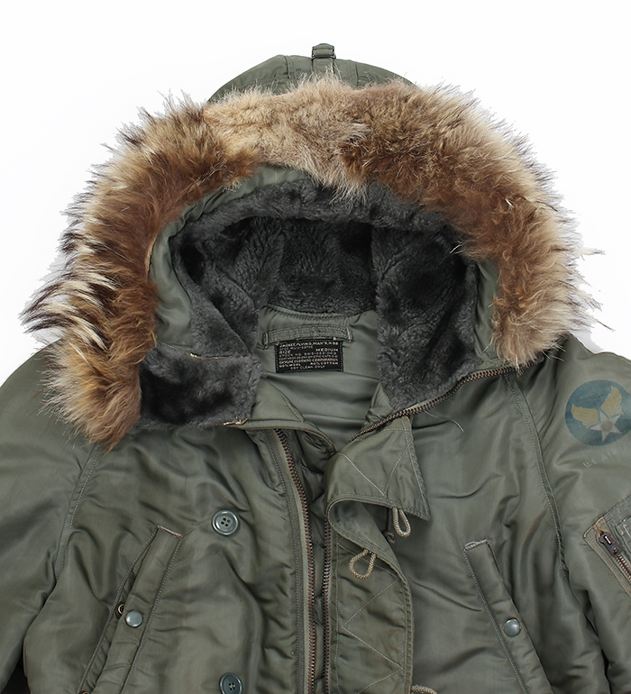 1953年(推定)採用され、以後約40年の長きにわたりUSAF(米空軍)において継続使用されたN-3BはHeavy Zone(-10 〜 -30度C)の気象下において搭乗・勤務するエアークルーを対象に開発支給されたフライト防寒衣料であり、その初期から中期に至る間に支給されたモデルのフード・トリミングには野性味溢れるコヨーテが使用されていた。