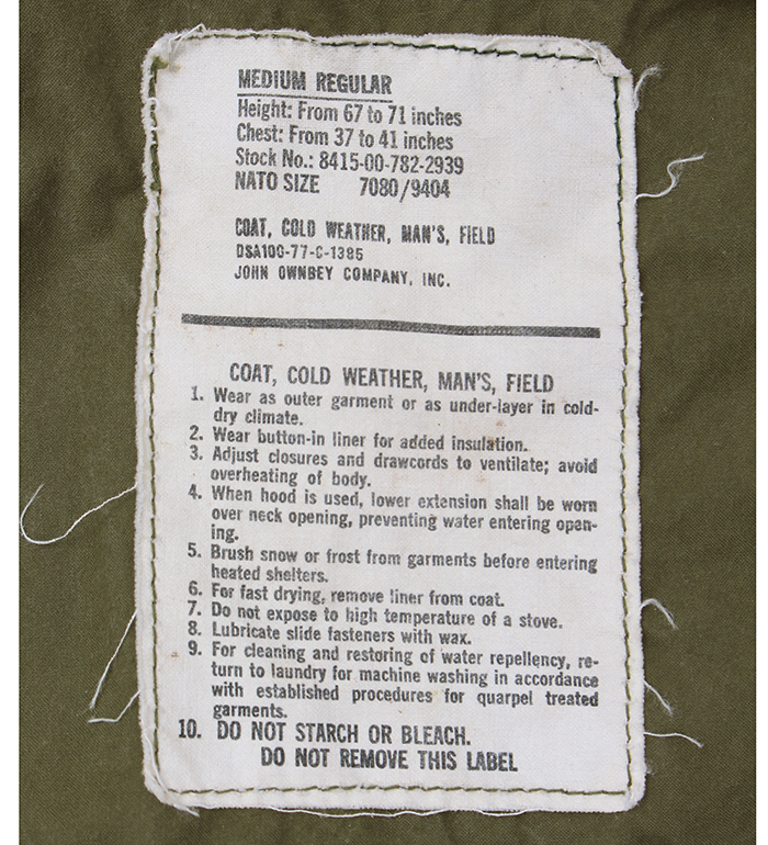 ■制式名称:COAT, COLD WEATHER, MEN'S, FIELD , OG-107