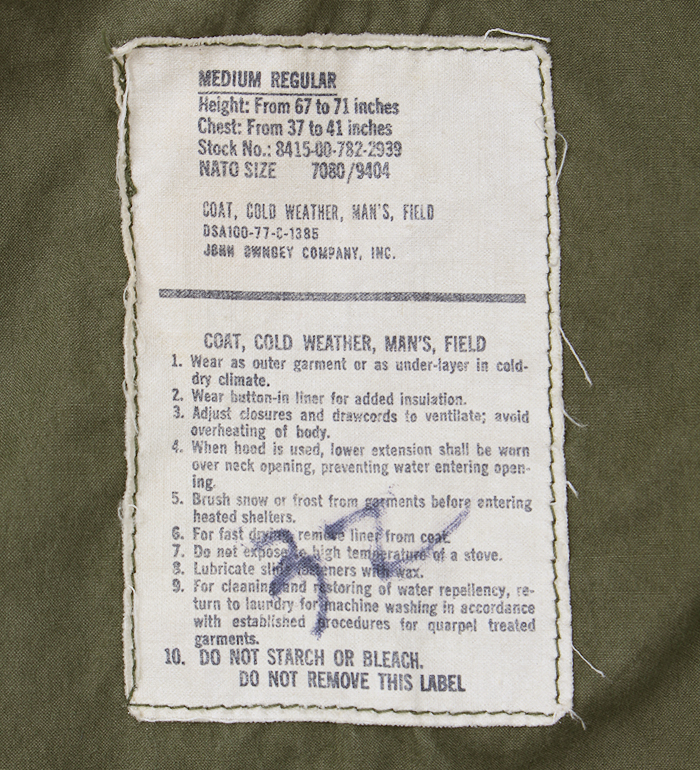 ■制式名称:COAT, COLD WEATHER, MEN'S, FIELD , OG-107