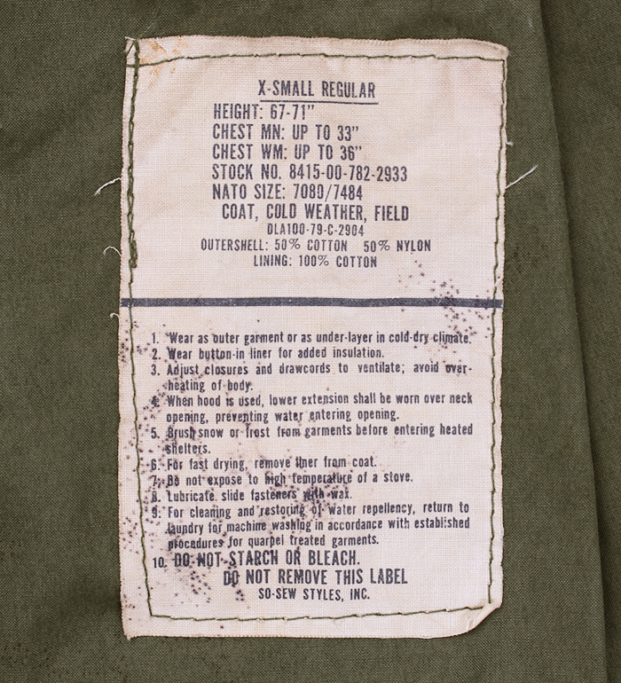 ■制式名称:COAT, COLD WEATHER, MEN'S, FIELD , OG-107
