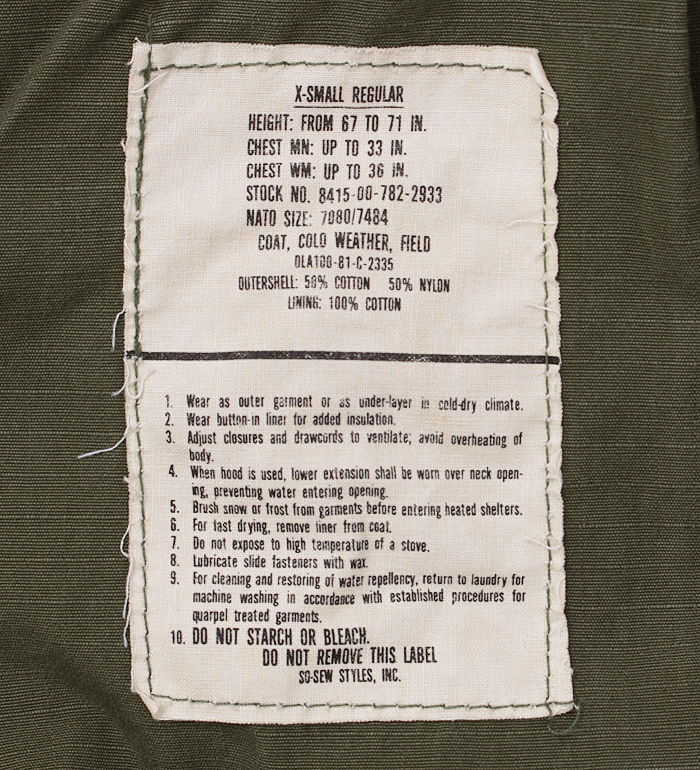 ■制式名称:COAT, COLD WEATHER, MEN'S, FIELD , OG-107