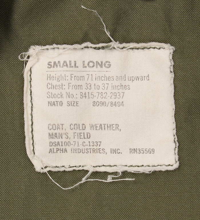 US(米軍) M65 フィールドジャケット・3rd Model/ブラスジッパー/DSA-71/ALPHA/実物・極上