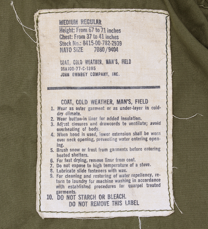 ■制式名称:COAT, COLD WEATHER, MEN'S, FIELD , OG-107