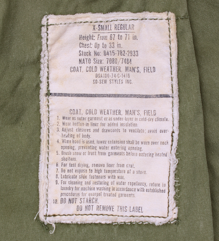 ■制式名称:COAT, COLD WEATHER, MEN'S, FIELD , OG-107