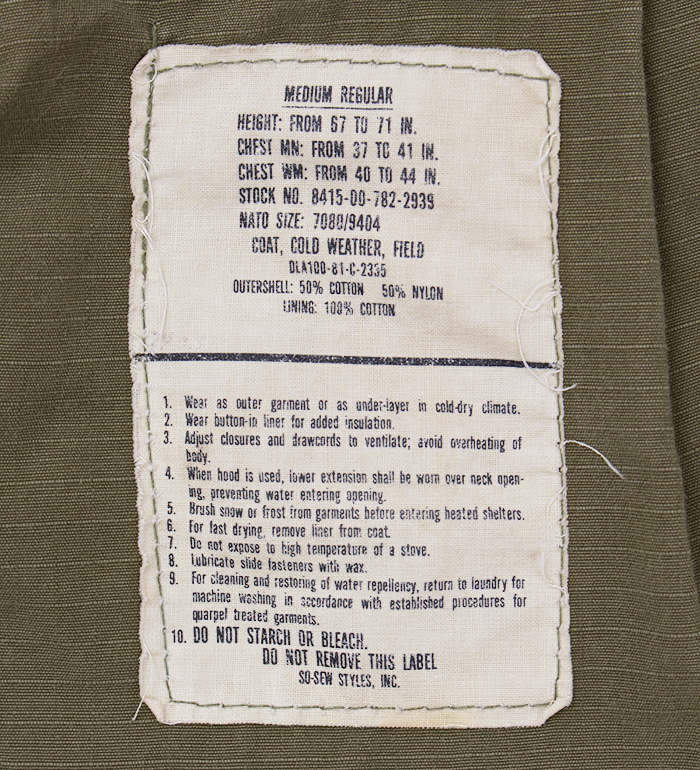 ■制式名称:COAT, COLD WEATHER, MEN'S, FIELD , OG-107