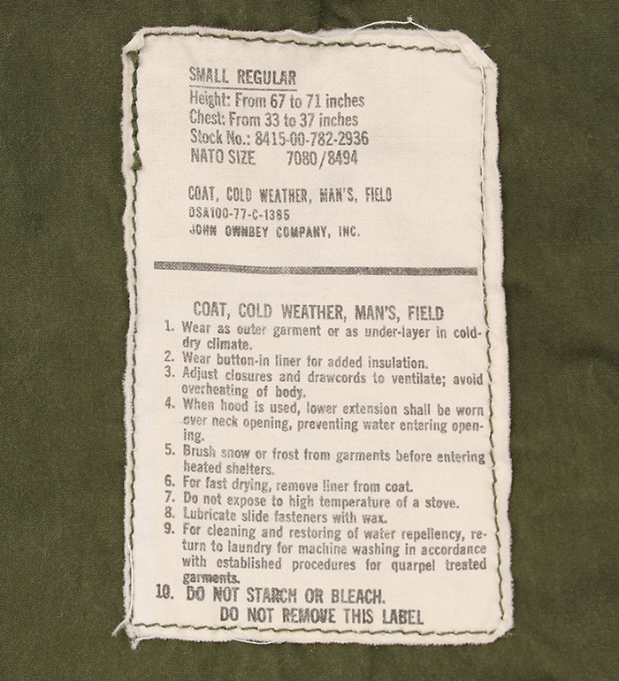 ■制式名称:COAT, COLD WEATHER, MEN'S, FIELD , OG-107