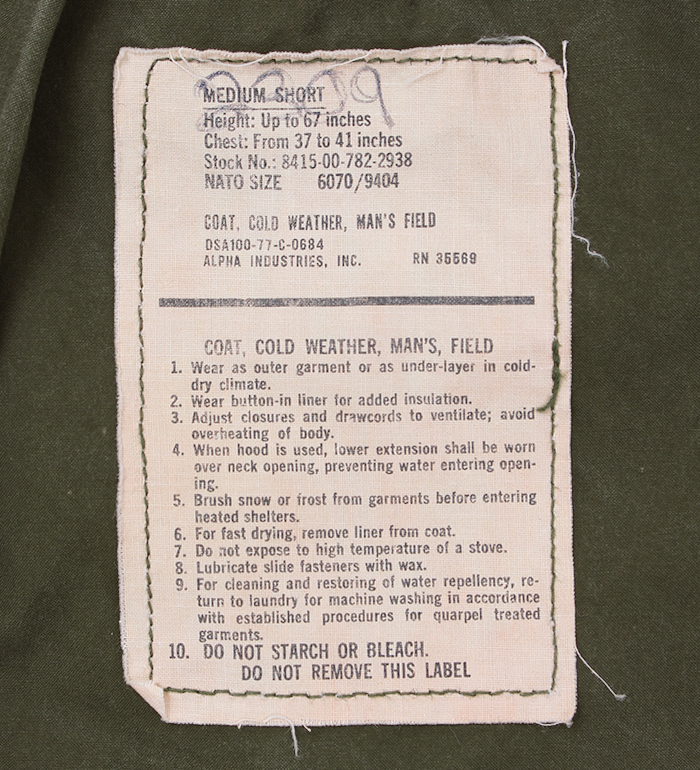 ■制式名称:COAT, COLD WEATHER, MEN'S, FIELD , OG-107