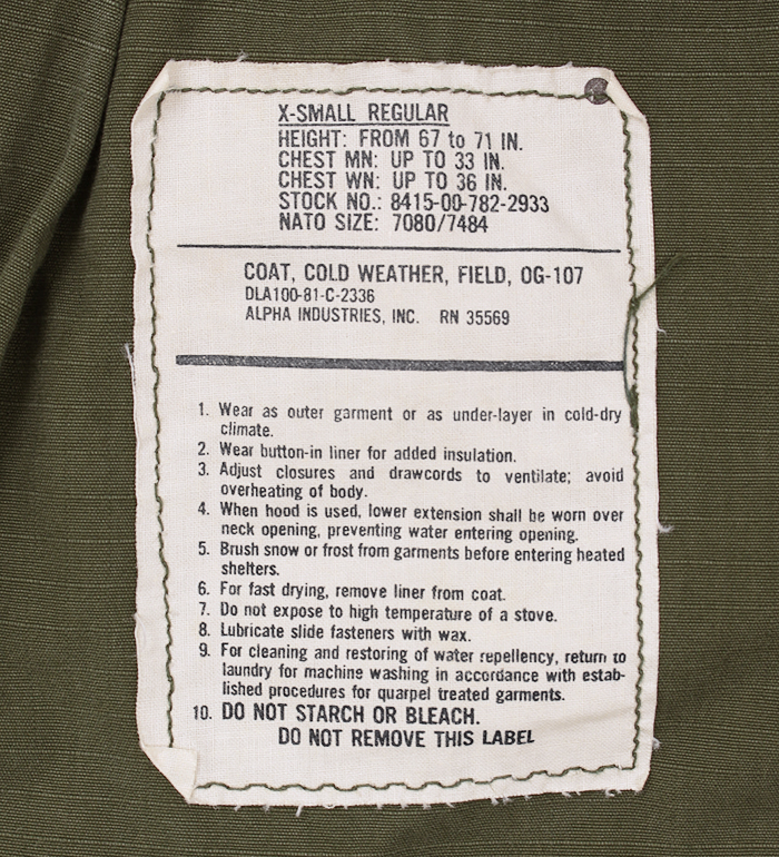 ■制式名称:COAT, COLD WEATHER, MEN'S, FIELD , OG-107