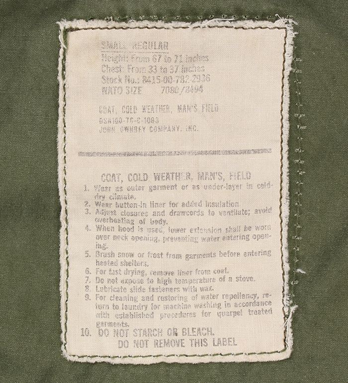 ■制式名称:COAT, COLD WEATHER, MEN'S, FIELD , OG-107