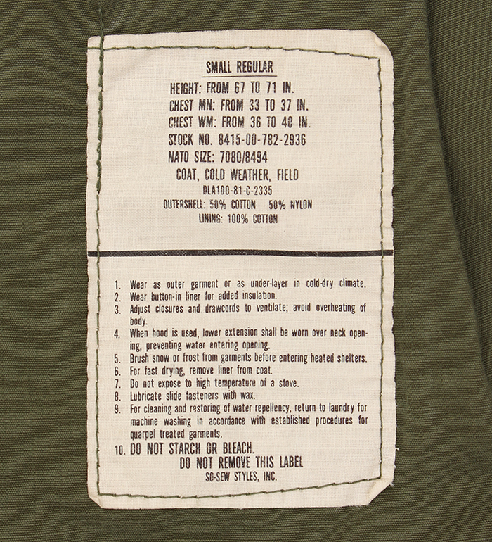 ■制式名称:COAT, COLD WEATHER, MEN'S, FIELD , OG-107