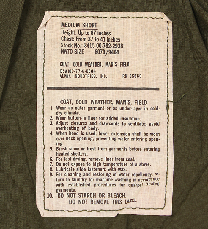 ■制式名称:COAT, COLD WEATHER, MEN'S, FIELD , OG-107