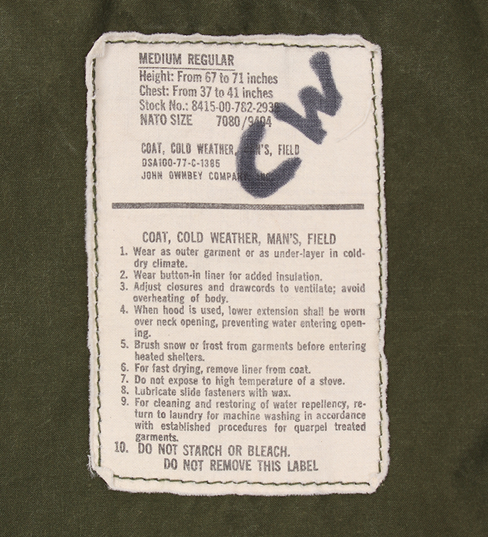 ■制式名称:COAT, COLD WEATHER, MEN'S, FIELD , OG-107