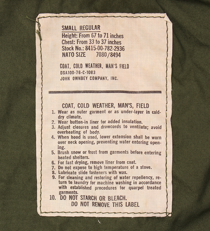 ■制式名称:COAT, COLD WEATHER, MEN'S, FIELD , OG-107