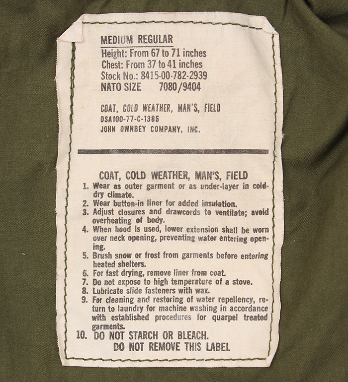 ■制式名称:COAT, COLD WEATHER, MEN'S, FIELD , OG-107