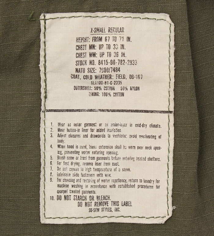 ■制式名称:COAT, COLD WEATHER, MEN'S, FIELD , OG-107