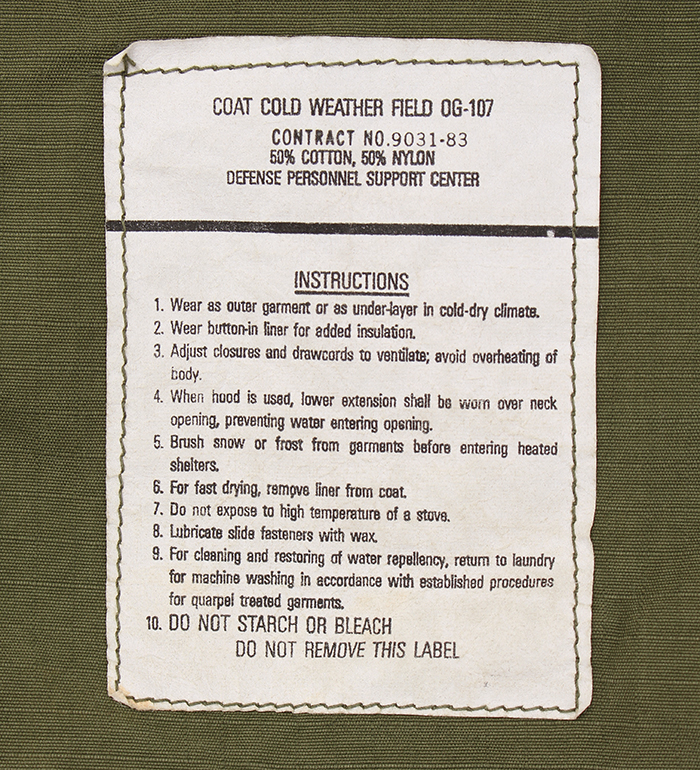■制式名称:COAT, COLD WEATHER, MEN'S, FIELD , OG-107