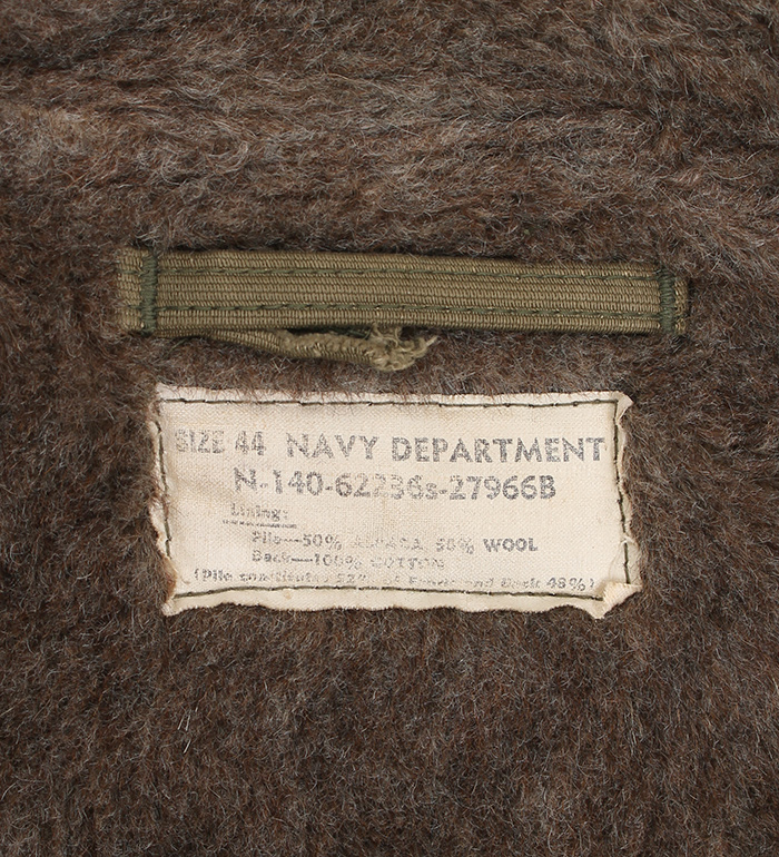 数度の使用のみでの放出と考えられる極上の中でもトップクラスのコンディションの物ですが、製造され約70年を経過した米海軍放出実物衣料です。使用、コレクションに差し支え無い範囲においての経年変色、保管汚れ、小汚れ、些細な小虫食い等があること、予めのご了承お願いいたします。