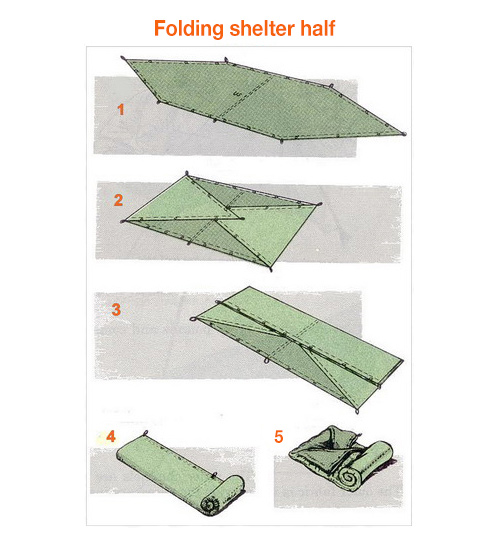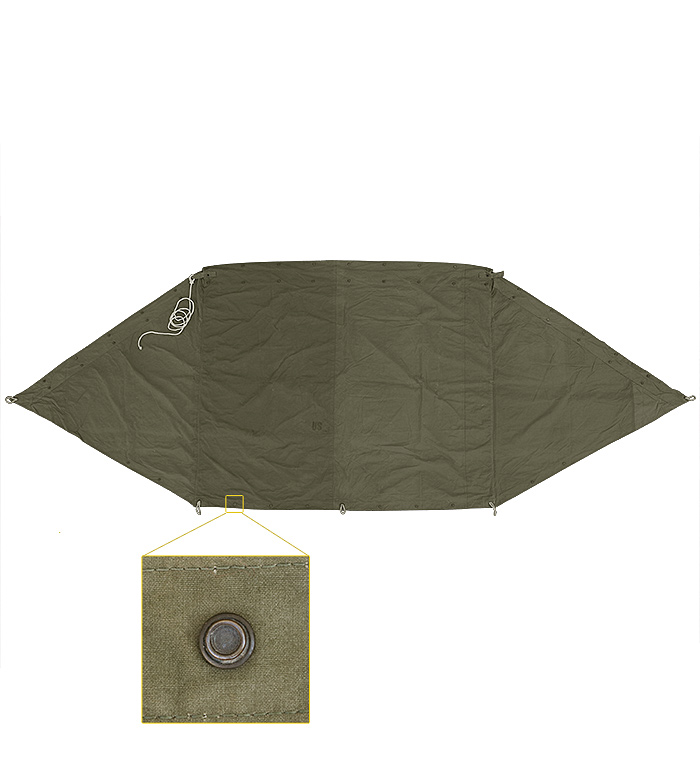 注) NAM戦時(71年頃まで)の支給品には連結用ドットボタンがテント下部に取り付けられ、複数張で使用可能な設計となっていた。