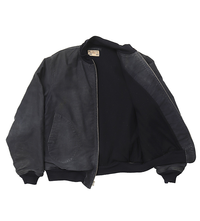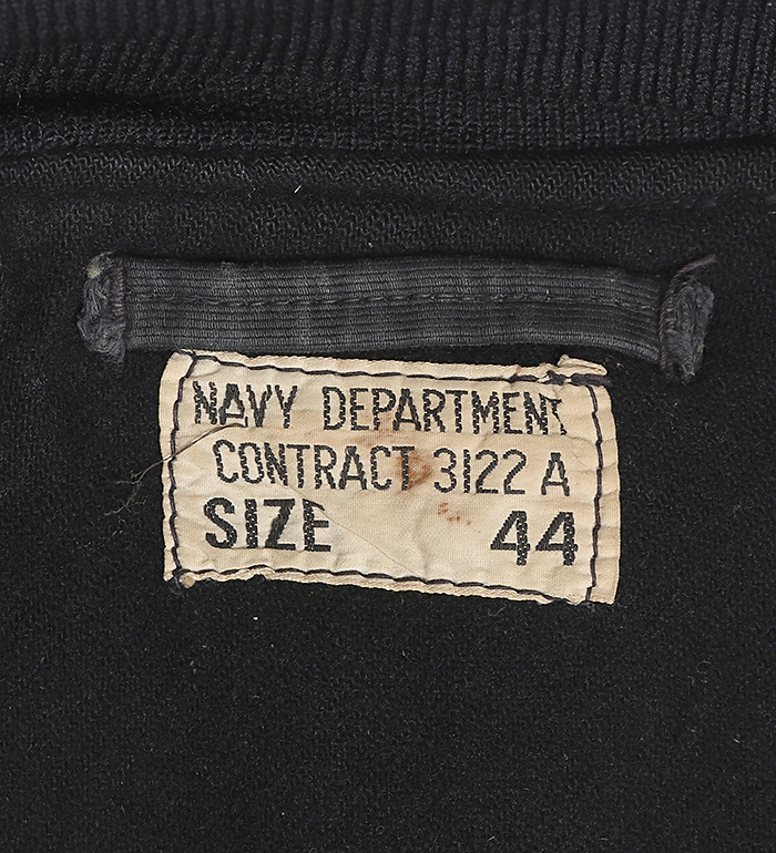 現存する大戦時の米海軍デッキジャケットとしては極上の中でもトップクラスの物ですが、あくまでも軍務で実際に使用された米海軍放出衣料です。使用、コレクションに差し支え無い範囲においての経年変色、汚れ、小虫食い痕、修理痕、等があること、予めのご了承お願いいたします。