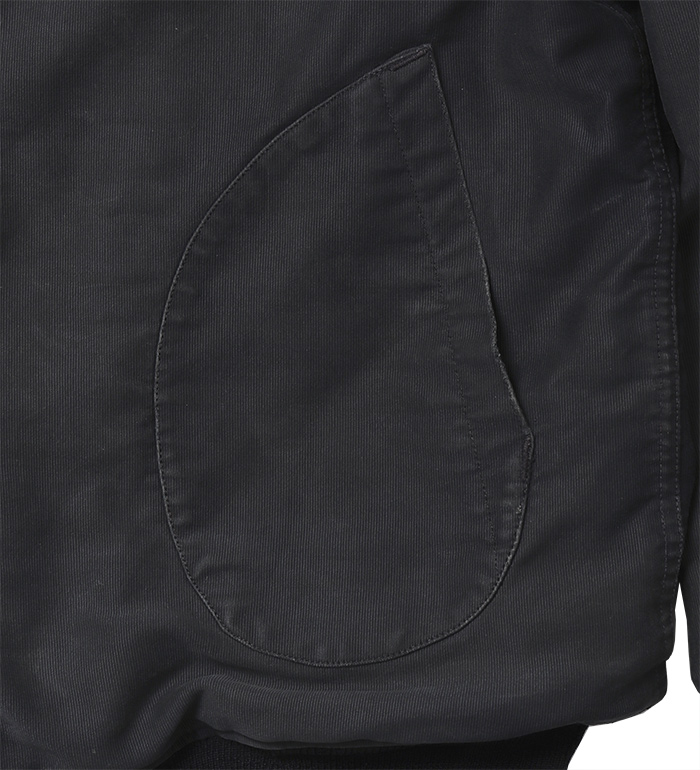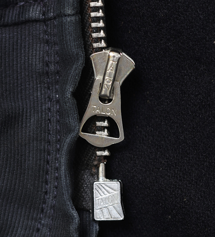 1941-42年採用、44年頃まで継続支給された米海軍デッキジャケット(ジッパーモデル)、Hook型ファスナーをフロントに用いた後期型に対し、フロントがジッパーのこのモデルを初期型と呼ばれることが多い。このモデルから採用された畝が特徴の『コーデュロイ織地』はその後、殆どの米海軍冬季デッキジャケットに用いられた。背中のステンシル文字『U.S.NAVY』がプリントされた形跡が無いのはこのジャケットが採用年1941年コントラクトのせいか。コンディションの良い実物の入手は極めて困難な『米海軍デッキジャケット、大戦初期型(ジッパーモデル)』。実物極上、放出品、コレクターズ・アイテム!!