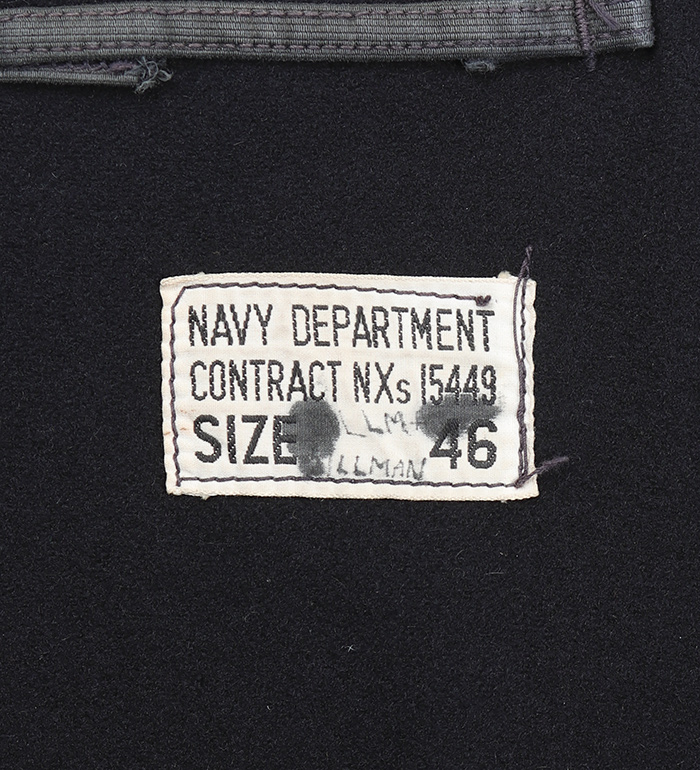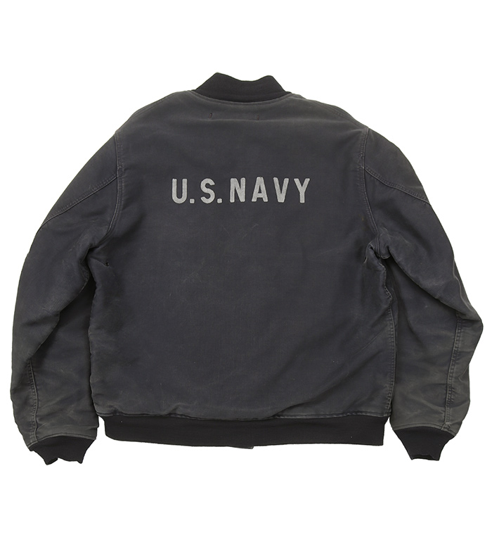 現存する大戦時の米海軍デッキジャケットとしては極上の中でもトップクラスの物ですが、あくまでも軍務で実際に使用された米海軍放出衣料です。使用、コレクションに差し支え無い範囲においての経年変色、汚れ、小虫食い痕、修理痕、等があること、予めのご了承お願いいたします。