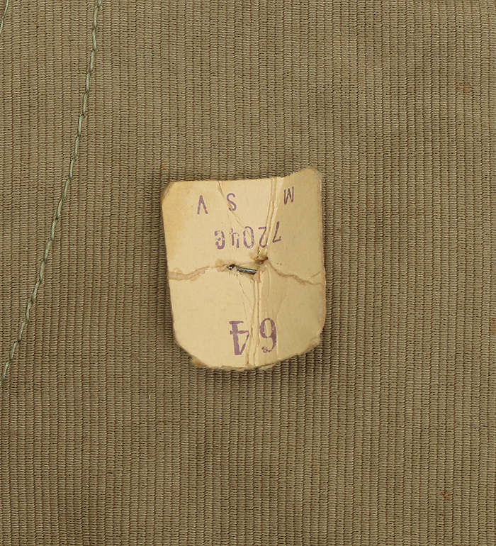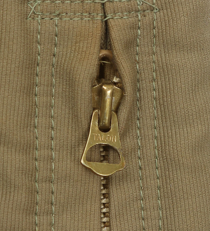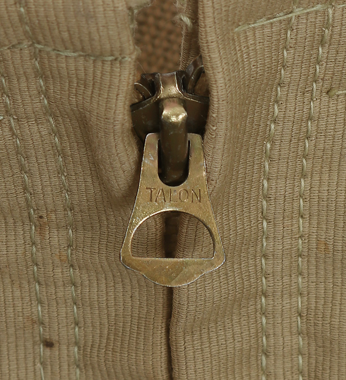 注) 1943年製の特徴である、戦時型ジップ(鉄、亜鉛の合金)、黄色メッキを施した同素材のスライダーが使用されている。 >画像参照
