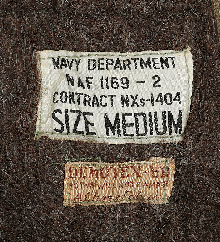 極めて稀な、未使用の証『カッティングタグ』付き未使用品です。製造支給されてから約80年を経過する米海軍実物フライト衣料です。長期の保管による、若干の変色、小汚れ、僅かな虫食い、僅かな金属部分のサビ発生等がある事、予めのご理解ご了承、願います。
