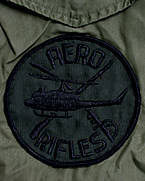 ●左胸(ポケット部):ヘリコプターの図柄と『AERO RIFLES』の名称の入った部隊パッチ(ODコットンツイル生地ベースに黒糸刺繍仕様)付/右下画像参照