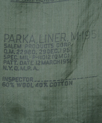 ■制式名称:PARKA, LINER, M-1951