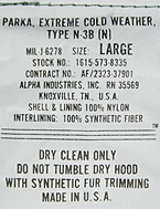 ●表記制式名称:PARKA, EXTREME, COLD WEATHER, TYPE N-3B (N)