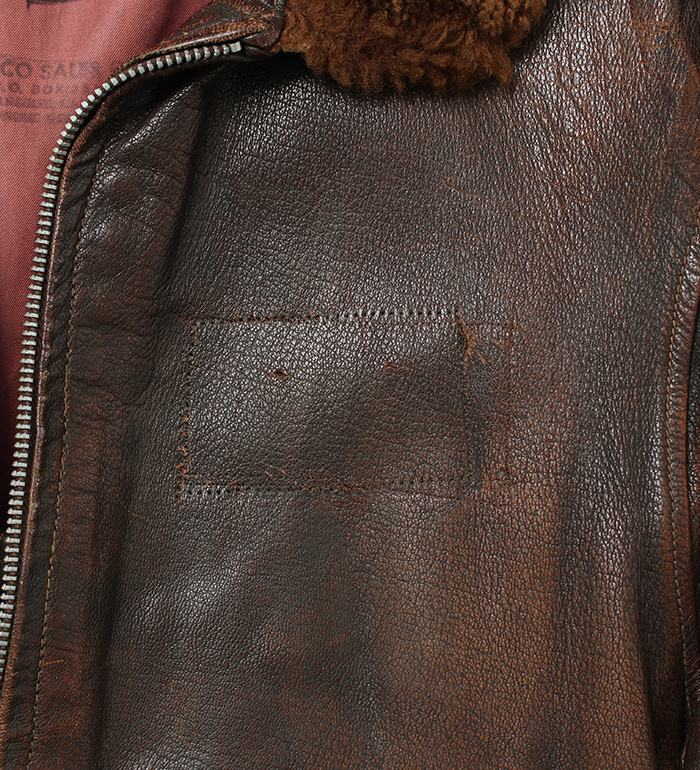 ・左胸:レザー・ネームプレートの取り外し跡(縫いステッチ跡)あり/画像参照