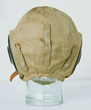 大戦時、陸軍航空隊(AAF)及び海軍(NAVY)で共用使用された布製夏用飛行帽。酸素マスク取り付用ドットボタン(雄側)左右4個タイプ。実物USED品。