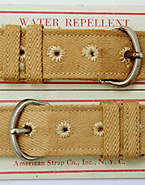 大戦時、米陸軍における最も典型的なタイプのコットン素材製の時計用ベルト。カーキ色タイプ。ベルト全長はエキストラ・ロング長。実物未使用品。
