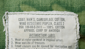 ■制式名称:COAT, MAN'S, CAMOUFLAGE COTTON, WIND RESISTANT POPLIN, CLASS 2