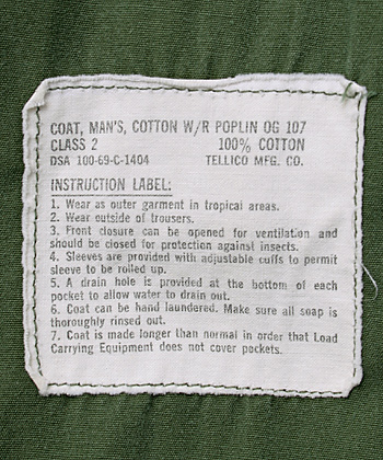 ■制式名称:COAT, MAN'S, COTTON,W/R POPLIN OG107 CLASS 2