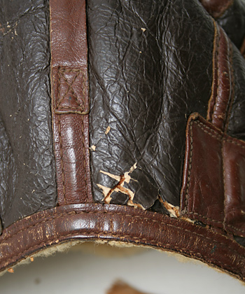 大戦時、1941年に採用された革製冬用飛行帽。実物USED品