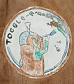 ●中央部:爆弾を抱えた後向きの女性像(足元に翼?)